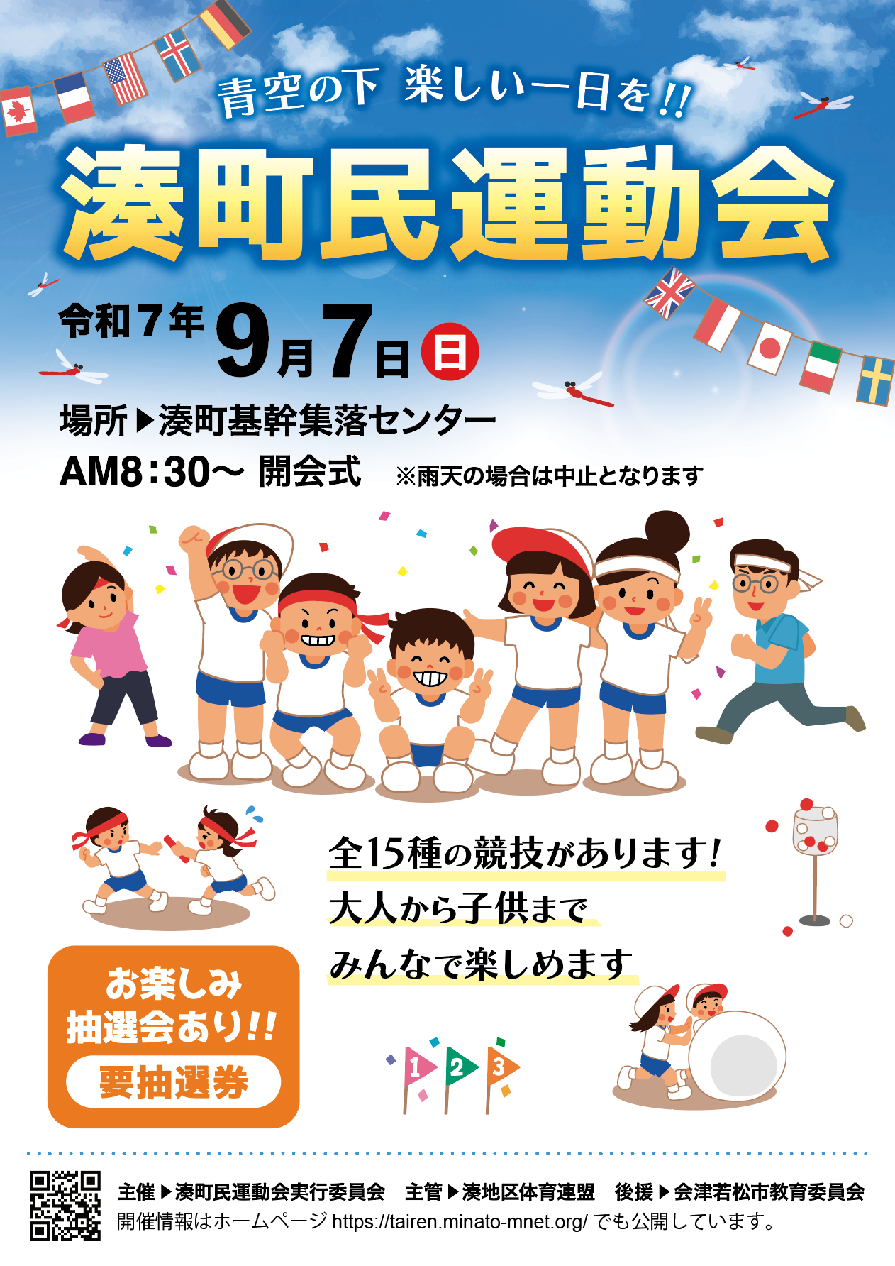 恒例の湊町民運動会を開催致します!地区の皆様、ご家族で奮ってご参加下さい。